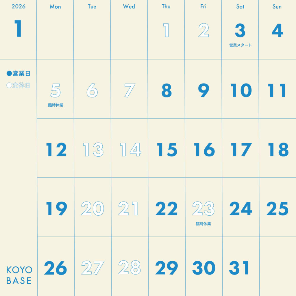 1/5(月)と1/23(金)は臨時休業日となります。 ご了承ください。