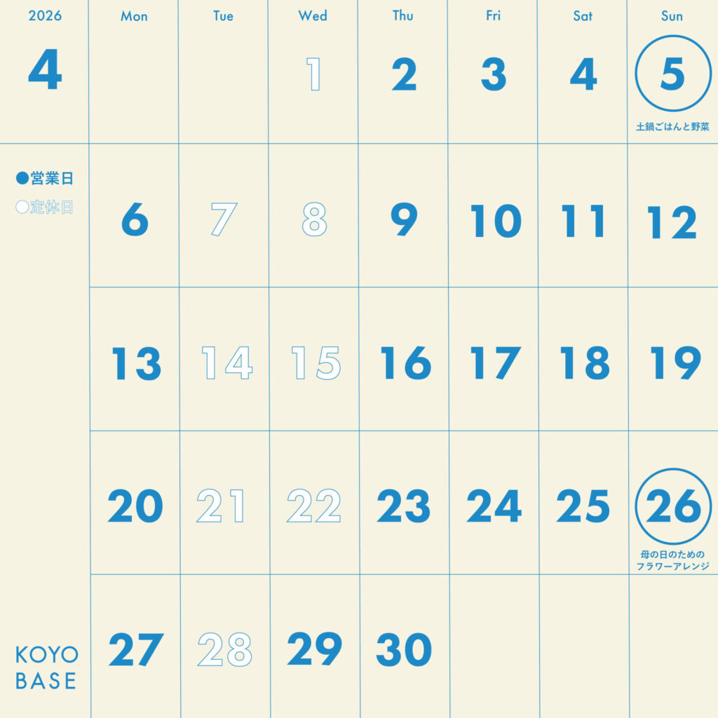2026年4月の営業カレンダーを公開します